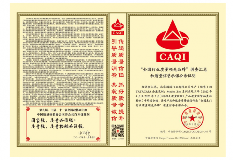 作为中国质检领域的权威机构,中国质量检验协会始终坚守着保障消费者权益、促进产品质量提升的初心。每年“3·15”期间,中检协都会为那些在质量、服务等方面表现卓越的企业颁发荣誉奖项,以表彰其在保障消费者权益、提升产品和服务质量方面所做的努力和贡献。今年,TATACASA凭借其卓越的产品质量、优质的服务以及持续的创新能力,荣获了中国质量检验协会颁发的“全国行业质量领先品牌”称号。这一殊荣不仅是对TATACASA品牌实力的认可,更是对其长期以来坚持高质量发展理念的肯定。