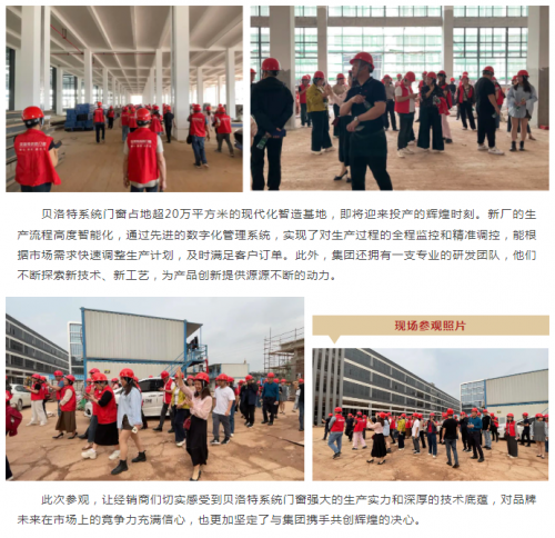 3月28日,阳光明媚,来自全国各地的经销商们满怀期待地乘坐大巴前往贝洛特系统门窗位于四会的新厂参观。一下车,他们就被新厂宏大的规模所震撼。