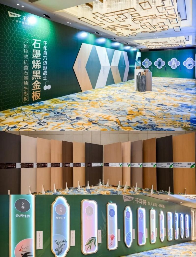 在本次玉林新品发布会上,千年舟带来了一系列令人瞩目的新品。其中,千年舟六边形战士-石墨烯黑金板(六维锌效抗菌石墨烯生态板)凭借卓越的石墨烯、抗菌、抗病毒、防霉、净醛和除TVOC六大核心功能,备受关注。