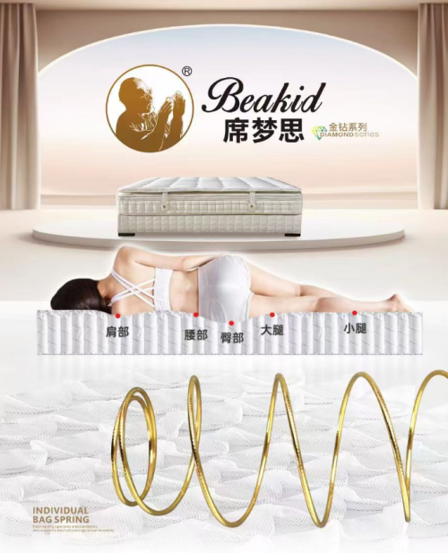 这种科学的分层设计,宛如一部精密运转的机器,精准地调节着睡眠时的身体状态,平衡了舒适与支撑的关系,解决了许多人长期面临的睡眠难题。在材料的选择上,席梦思金钻床垫更是精益求精。