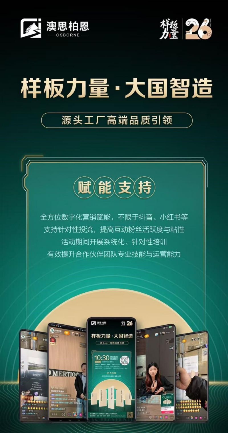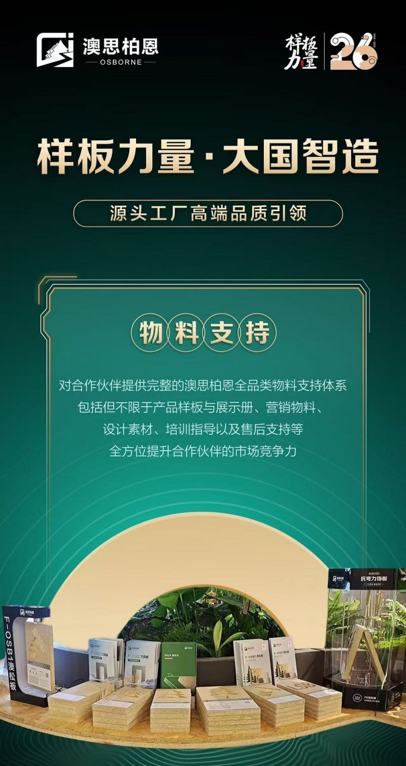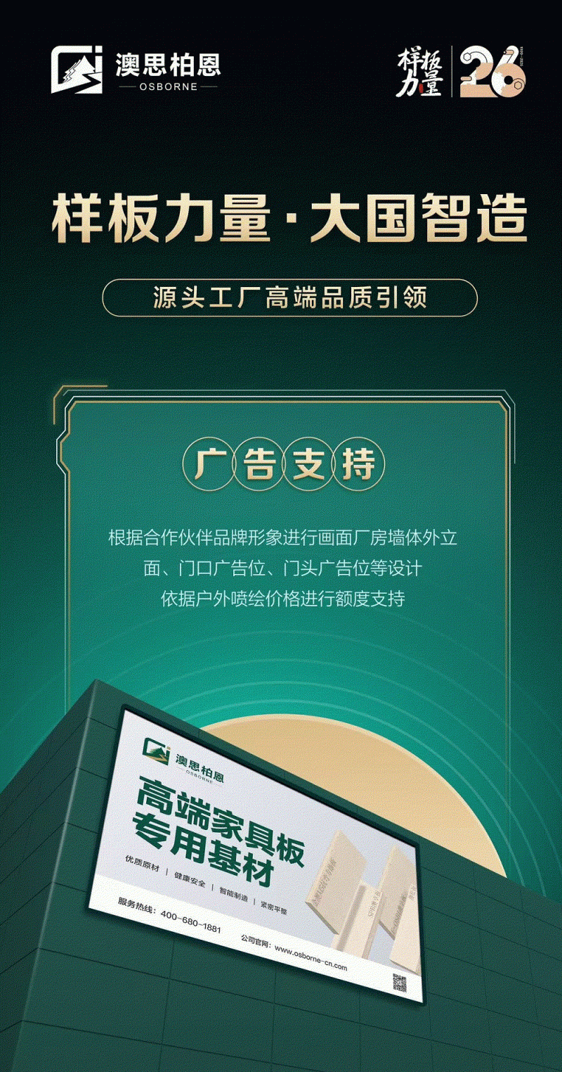 面对板材行业转型升级的核心命题,澳思柏恩正式推出“样板力量·大国智造”品牌日活动,以持续性、系统化赋能为核心,构建贯穿伙伴成长体系,助力合作伙伴实现从产品认知到市场占位的长效价值提升。