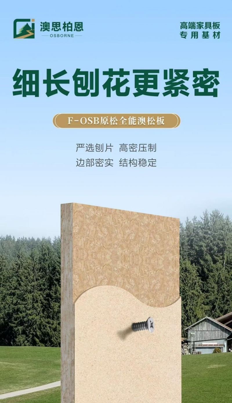 F-OSB原松全能澳松板,不仅是一张板材的升级,更是对家居产业可持续发展的技术应答。从优质松林到智能工厂,从检测数据到真实场景,澳思柏恩以材料科学重构空间美学,让每一张板都成为承载健康生活的可靠承诺。