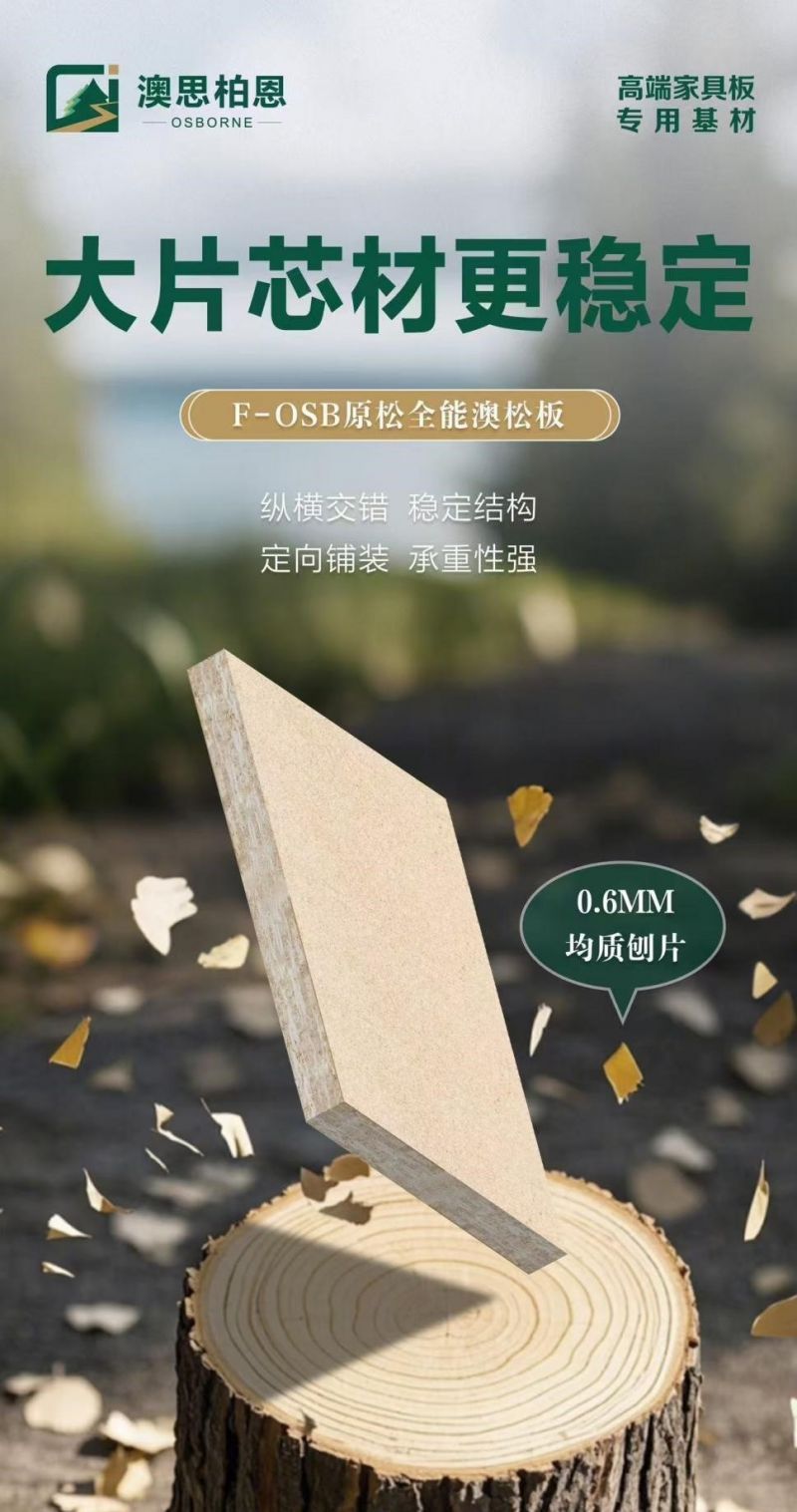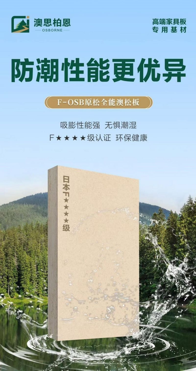 结合这一趋势,澳思柏恩历经多年研发,攻克了传统板材易变形、耐潮性差的技术瓶颈,推出F-OSB原松全能澳松板,以创新重新定义行业标准,为家居健康筑牢防线。