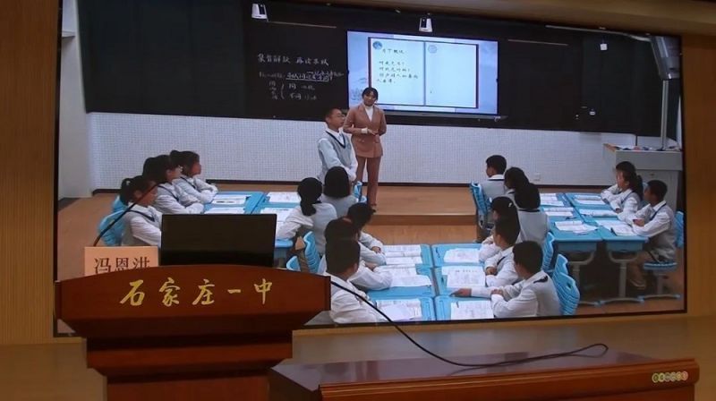 “请看这个案例”,冯校长切换到一节语文课堂片段,并与石家庄一中的青年教师针对本节课进行深度交流。交流中冯校长指出,好的课堂学生不再是知识的被动接受者,而是问题的发现者、合作的探索者、真理的追问者;教师则化身“点亮星光”的引路人,通过分层教学、分组学习、分类管理,让每个孩子都能在“最近发展区”绽放潜能。