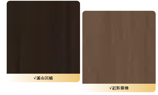“溪山沉榆(同步石墨烯)” 和 “岩影雾橡(同步石墨烯)” 等深色系花色,不仅具有耐脏、耐磨的特性,还能与厨房的各种电器和厨具完美搭配,营造出时尚、大气的厨房风格。