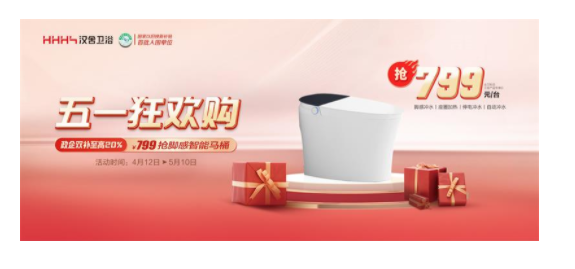 在价格让利之外,汉舍更展示了技术普惠的前瞻布局,将大量拥有前沿技术的创新产品,投入到此次“五一狂欢购”大促活动中。799元即可抢脚感智能马桶,以前言先进技术下沉,“让更多人更早用上智能马桶”,直击消费者需求点,用“价值战”替代“价格战”,探索正向积极的发展路径。