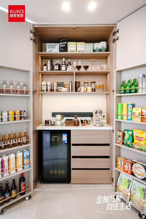 从餐厨一体、客阳一体到家庭图书馆、多功能书房,从萌宠阳台、音乐角到冰箱零食柜、母婴飘窗等等,每个场景都精准捕捉用户痛点,以技术创新与情感化设计,将冰冷的物理空间转化为“向往生活的载体”,顾家整家定制为用户打造更具有生活感、体验感和情景感的整家一体化空间解决方案。