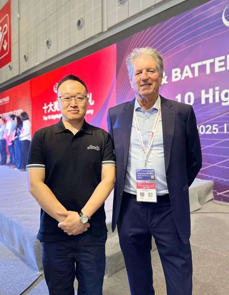 在颁奖仪式后,能环宝COO孙毅先生与被誉为“太阳能之父”的澳大利亚科学家马丁·格林教授展开深度对话,双方就数智化运维技术产业化路径进行深入交流,随后亲切合影。这位行业奠基人对能环宝技术成果给予高度评价,认为其展现了中国新能源企业在全球能源变革中的创新锐度与责任担当。