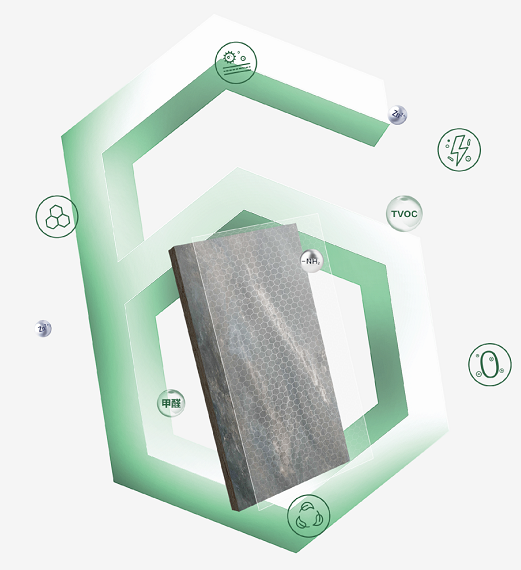 千年舟抗弯海洋生态板饰面以三胺纸饰面为主要材料,以锌离子+石墨烯双重无机抗菌剂作为原料,实现广谱抗菌、抗病毒、0级防霉、高效净醛、除TVOC和石墨烯双重抗菌抗病毒功效,六维智护体系,全方位守护居家健康。
