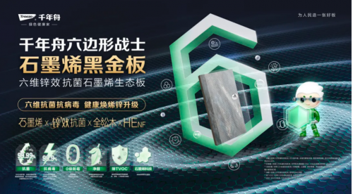 千年舟石墨烯黑金板,首次将石墨烯应用于家居板材,结合锌效抗菌技术,形成抗菌、抗病毒、防霉、净醛、除TVOC、石墨烯等六大核心功能,堪称家居健康的“全能护卫”,以六维健康科技,重新定义家居防护新标准,向梅雨季节的隐形威胁说“NO”!