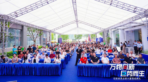 典礼现场,彩带飘扬、花团锦簇,嘉宾云集,共襄盛举。从政府主管部门、商协会领导到行业翘楚,从合作伙伴到业界同仁,以及网红达人及媒体代表等,约500余人,共同见证巨欧家具集团深耕行业十九载后,以总部大厦落成为起点,迈向全球化战略布局的壮阔新篇。