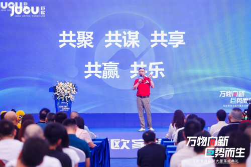 巨欧家具集团董事长王永辉在致辞中提到,一直激励自己奋勇前行且一路走来感触至深的是:命运要掌控在自己的手中,逆水行舟不进则退;过硬产品成就用户的梦想,优质服务保驾护航产品深入市场。基于此,2024年,巨欧再次选择逆势而上,以开放、包容、专业的理念,斥资5000余万元打造出集商用家具于一体的共享总部平台,让有梦想、热爱家具、想创业的行业人士,共聚、共谋、共享、共赢、共乐,将梦想、资源和能力实现有效转化,让其人生价值得到升华。