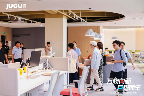 典礼结束后,与会嘉宾在董事长王永辉、副总经理王俊及所有巨欧家具工作人员的带领下,前往巨欧家具集团总部大厦展厅,从1楼到9楼,分别对办公家具、医养家具、学校家具、公寓家具等,进行学习、参观和交流。