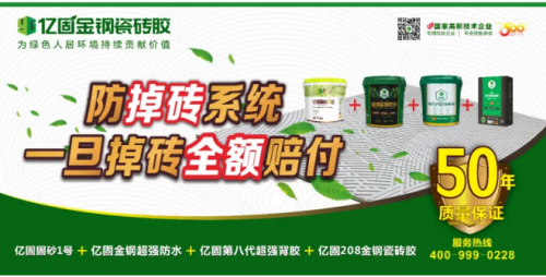 亿固拥有7大系列产品矩阵,构建全场景解决方案:从基面处理到瓷砖粘贴,从防水修缮到美缝清洁,均以“环保+高效”为核心。其中,亿固208金钢瓷砖胶,凭借“钢丝加固”技术实现粘结力超国标50%,上市至今销量突破1.6亿包;亿固353第八代双组份背胶以“国内领先”评价填补行业空白。更值得关注的是,全系产品通过ISO14001环境管理体系认证及获得法国A+认证、德国EC1、中国十环认证等,将绿色生产贯穿研发、制造全链条。