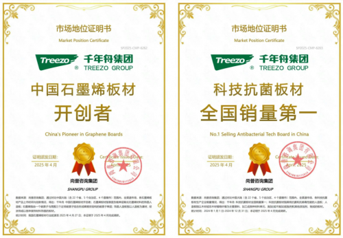 智创黑金科技,更获得了市场地位认证加持。2025年4月,千年舟获得“中国石墨烯板材开创者”、“抗菌科技板材全国销量第一”等四大市场地位认证(数据来源尚普咨询集团)。黑金科技行业领先,是科技与健康的标杆之作。