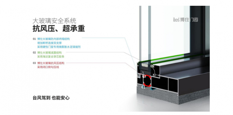 大玻璃安全系统更是集抗风压、防坍塌、减震于一体:闭口倒钩压线设计增强抗风压能力,断桥连接双支撑结构防止内部坍塌,硬性微膨胀水泥填缝剂杜绝渗水隐患,即使面对台风等极端天气也能保持稳固。