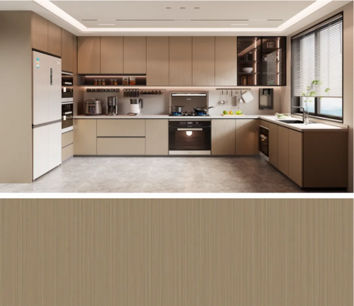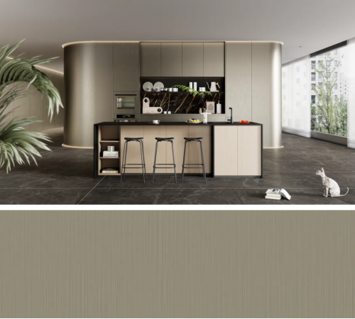 千年舟全新推出的PET轻颜板高端花色,以金属元素为灵感,融合创新材料技术与精湛工艺,打造出兼具未来感与高级感的液态金属和拉丝金属花色。每一款不仅是视觉的盛宴,更是空间质感的各方面感官的突破。