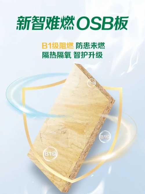 千年舟新智难燃OSB板凭借领先的技术、卓越的性能,为每一个家庭打造安全、健康、舒适的居住空间,成为消费者安心家装的可靠之选。