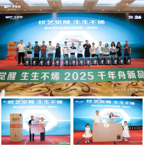 为回馈合作伙伴的长期支持,活动现场针对去年为千年舟发展做出卓越贡献的合作伙伴精心准备了颁奖环节,搭配庄重的签约仪式,将氛围推向高潮。同时,千年舟清远家具厂运营中心团队还为现场客户准备了精彩的抽奖环节和答谢晚宴。整场活动既专业高效,又充满岭南文化韵味,最终在欢乐融洽的氛围中圆满落幕。