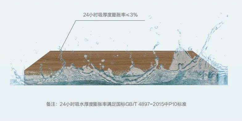 竹芯防水力饰SPB生态板采用创新防潮科技,独特的防潮粒子在板材内部构建高效防水屏障,能显著抑制水分侵入。经测试,该产品24小时吸水厚度膨胀率≤3 %,可达到P10级防潮等级标准.特别适合沿海地区、梅雨季及高温高湿环境使用,为家居装修提供可靠的防潮保障。