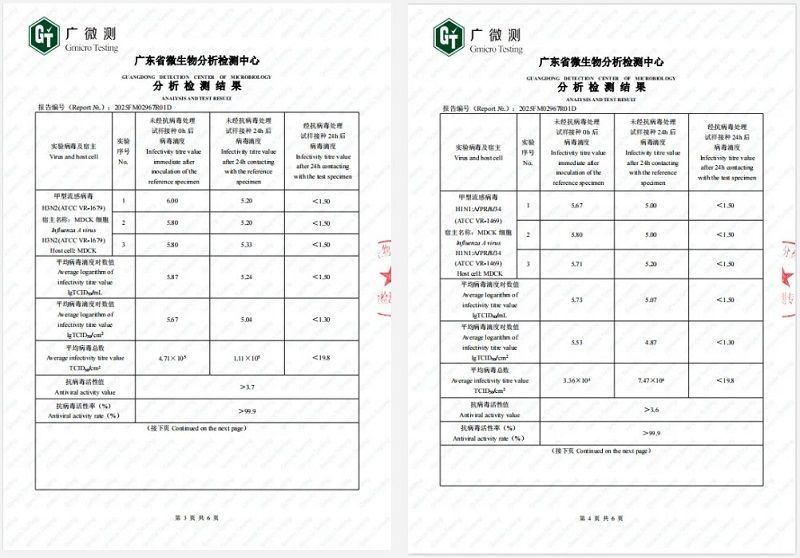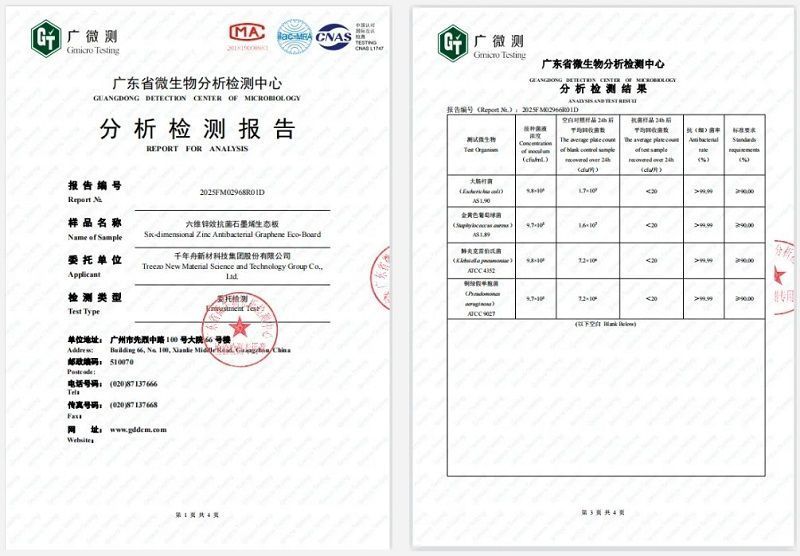 在病毒防护方面,石墨烯黑金板同样表现出色,经权威检测,它对甲型流感病毒H1N1、H3N2的抗病毒活性率高达99.9%。石墨烯材料表面的活性氧自由基能够破坏病毒的细胞结构,从而有效抑制病毒的活性传播。特别是在流感高发季,能有效为您和您的家人健康筑起一道坚实的屏障。