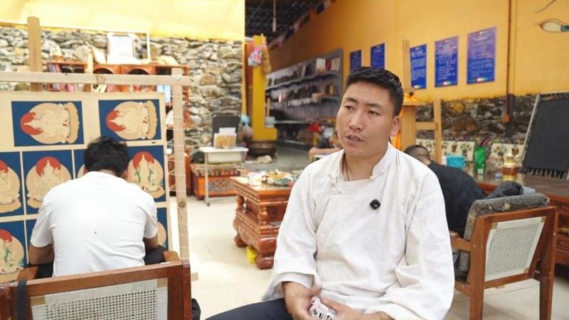 这门古老艺术在嘉绒大地焕发新生机。当地传承人怀着对唐卡的无限热忱,于2020年创办嘉绒佤唐卡非遗工作室。他们不仅潜心创作,更致力于守护这门技艺的未来:他们广邀其他传承人共同挖掘文化精髓;长期开设免费公益教学,薪火相传;积极参与行业交流与高级研修班,在学习的过程中拓宽视野。