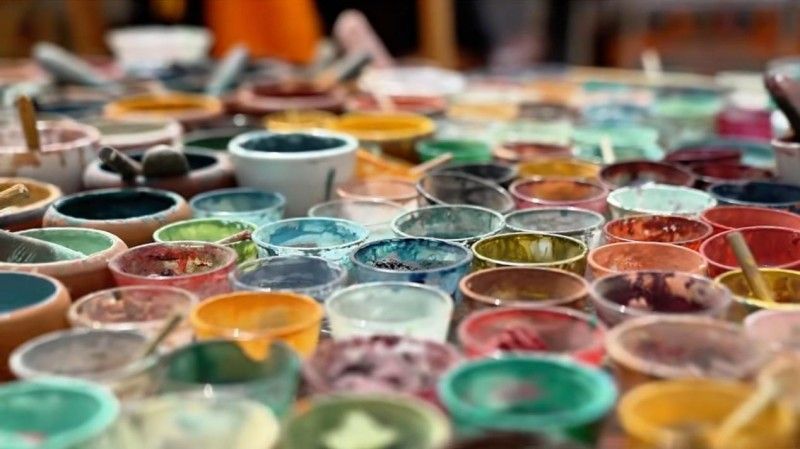 嘉绒唐卡之美,源于对极致工艺的坚守。唐卡的绘制要求十分严苛,嘉绒传统唐卡在制作画布时,采用一种特殊的泥土,当地人称之为“比曼”,和骨胶调制好以后均匀地涂抹在绷紧的画布上。画布晾干打磨好后即可开始构图起稿、炭笔淡墨勾勒、渲染、平涂、勾线、描金(铁线描、高古游丝描、柳叶描、行云流水描等传统手法)、开眼等一整套工艺流程。一幅唐卡,需要绘制几个月甚至一年的时间,在时间与匠心的沉淀中,艺术成为了永恒。