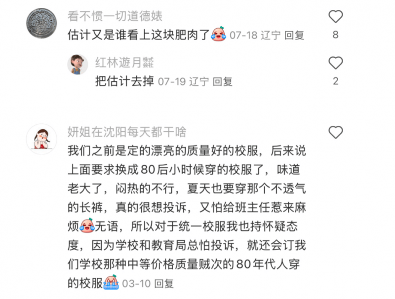 这种剥夺还体现在对“服育”价值的否定。阳东一问学校校长廖海吟曾说:“服育之美是礼仪美,使学生健康发展人格。”但统一校服让这种美失去土壤。“冬天的不保暖,夏天的不透气,烂裆烂口袋这都是常态”,江西家长吐槽的不仅是质量,更是“连基本穿着体验都保证不了,还谈什么文化传承?”