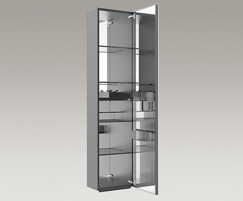 科勒博纳镜柜的巨幅镜面,不仅在外侧呈现出一面高达1.8米的全身镜,让用户在闭门时能清晰地一览全身造型,优雅地调整着装与仪态。这一设计不仅满足了日常照镜的基本需求,更在视觉上拓宽了浴室空间,营造出宽敞明亮的氛围。而当镜门开启时,内侧同样配备的1.8米高全身镜,则兼顾了照镜与取物的双重功能,使用户在整理妆容的同时,也能轻松拿取柜内物品,实现了空间利用的最大化。