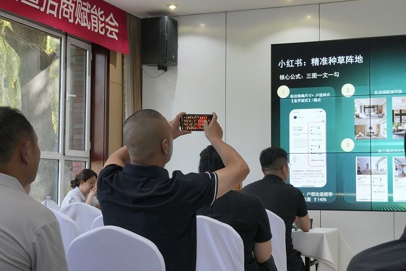 “智周万物,道济天下。”聚焦流量市场,会上分享了如何利用AI工具精准生成营销文案、高效设计产品海报,做好品牌营销;并系统演示了如何输入“轻法式橱柜”关键词,3秒生成20条小红书爆款文案,自动匹配莫兰迪色系场景图;