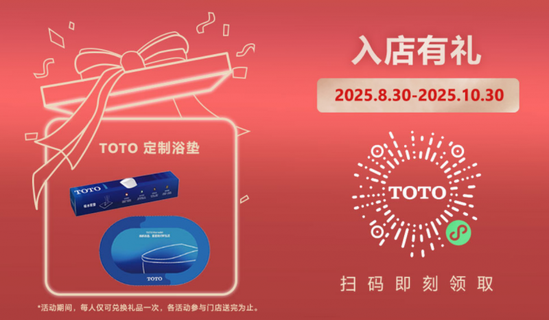 现在还有入店有礼活动,TOTO定制款浴垫,带给你一份生活的小惊喜。