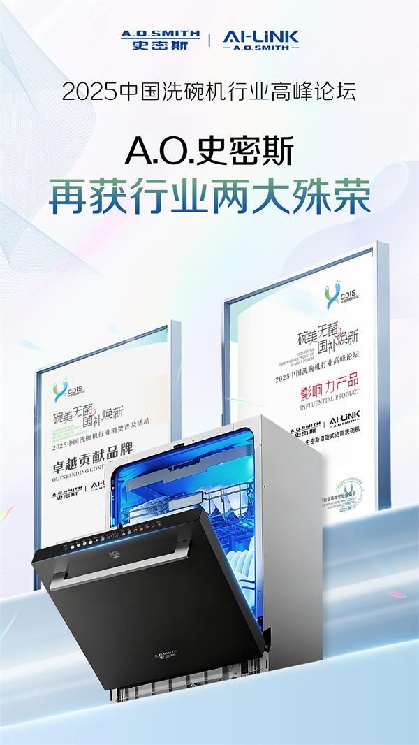 近日,广受业界关注的“碗美无菌 国补焕新 2025中国洗碗机行业高峰论坛”于景德镇拉开帷幕。本届论坛是中国洗碗机消费普及活动中的重要组成部分,旨在推动行业进一步发展。在论坛现场, A.O.史密斯一举摘得“2025中国洗碗机行业消费普及活动卓越贡献品牌”与“2025中国洗碗机行业高峰论坛影响力产品(自旋式洁霸洗碗机)”两项业界殊荣。这不仅是对A.O.史密斯厨电产品创新力的认可,也是对A.O.史密斯引领厨电行业发展贡献的高度肯定。