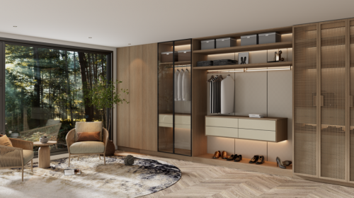 它以浅橡木的柔和肌理、自然与轻奢的风格碰撞,将秋日森林的清新与收纳空间的质感,一并“漾”进了家的角落。它萃取自橡木的原生纹理,浅木底色里交织着细腻的木纹走向,像被溪水冲刷过的卵石,每一道肌理都带着自然的通透感。这种“轻量不厚重”的质感,既契合秋季“去繁从简”的美学趋势,又以浅木的柔和感,为收纳区注入精致的氛围。