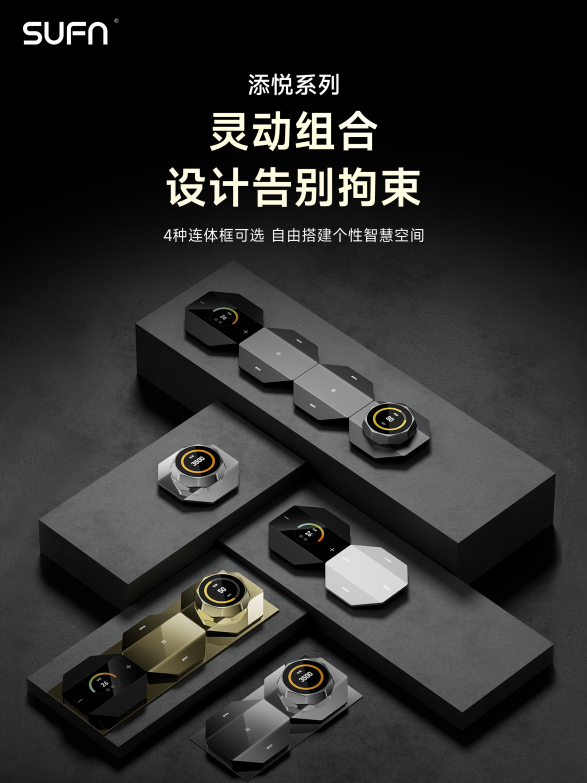 模块化自由组合设计——添悦系列产品提供四种连体框结构,用户可根据实际使用场景自由搭建个性化智慧空间,实现从功能性工具向空间艺术品的转化。模块化设计理念=提高了产品适用性,也体现对用户个性化需求的深度理解。