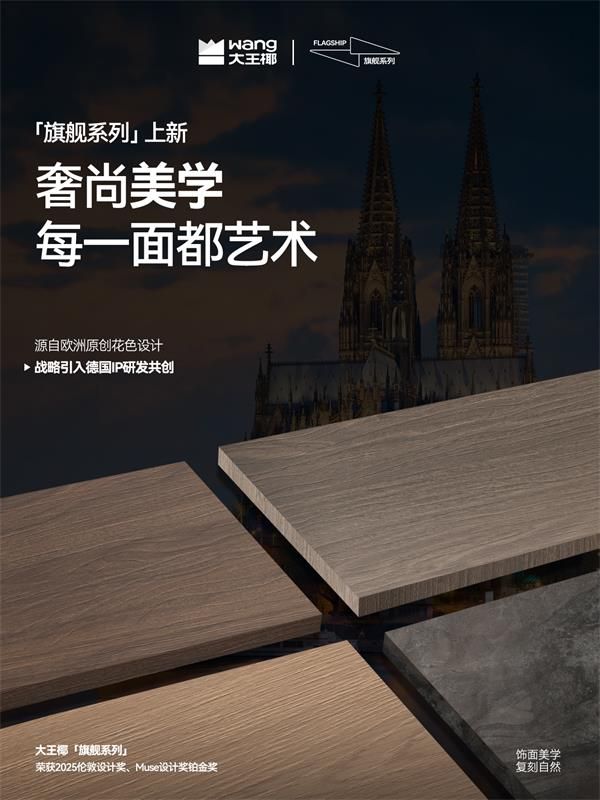 区别于普通板材的饰面印刷,旗舰系列新品源于大王椰与欧洲设计团队深度共创,再现旗舰饰面的高级和生命张力。