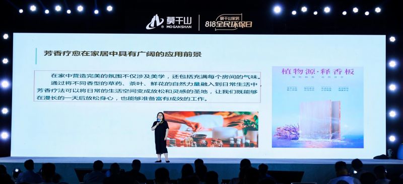 云峰莫干山板材总经理姚国良发布了莫干山板材 “疗愈系产品家族”,直击消费者日益增长的 “环保需求×健康需求×情感需求”复合型期待。