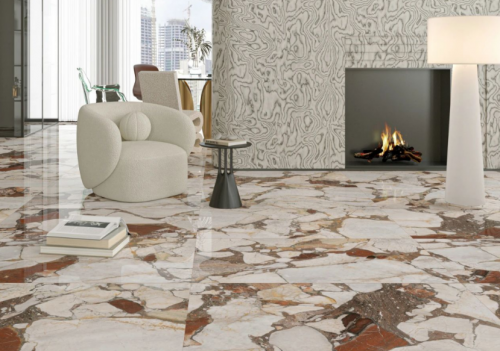 L&D唯美陶瓷的产品设计紧跟潮流趋势,哑光系列常采用微水泥质感,适合现代极简风格的客厅布局。亮光款则在花色创新上颇具亮点,图案清晰且富有立体感,为客厅增添视觉趣味。