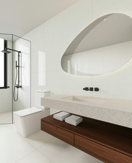 蒙娜丽莎瓷砖在适老化设计方面同样表现出色。其产品采用微磨砂表面处理,触感细腻而不粗糙,既保证了防滑性,又避免了对老人脚部皮肤的摩擦损伤。色彩选择上偏向低饱和度的暖色调,营造出温馨宁静的卫浴氛围,有助于舒缓情绪。