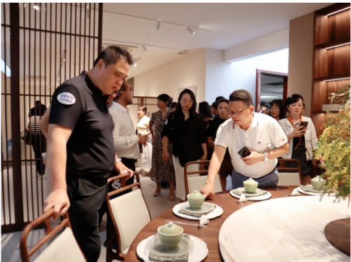 卡琳家具董事长彭青松、佛山市家具行业协会会长周振扬、广东省湖南商会家居专委会会长陈解元、中国软装协会会长杨振江、广东省家居建材商会秘书长杨传辉、全屋优品董事长周志胜等行业领导,及家居建材商协会、渠道/平台、经销商代表等200余人齐聚一堂,共同开启这场宋式美学家具“文化盛宴”。