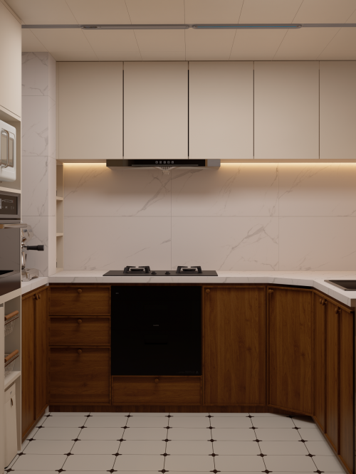 改造前,专业团队会上门进行勘测,不仅排查隐蔽工程隐患,更结合家庭结构提供免费定制方案:厨房采用洗涤区-切配区-烹饪区-储物区的科学分区设计,搭配吊柜下拉篮与嵌入式收纳柜,让取物、操作动线更流畅,收纳容量大幅提升;而卫生间则实现物品分类摆放,配合干湿分区布局告别杂乱。同时采用全新材料工艺,兼顾实用性与健康性,让改造既贴合需求又品质出众。
