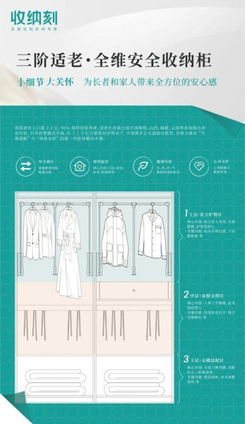 我国老年人口超2.2亿,90%选择居家养老,适老化改造已成市场刚需。山西、福建、云南等多地推出改造补贴,引导消费激活市场。在7.1万亿元银发经济带动下,市场需求正从基础功能型,升级为兼具“生理适配”与“场景友好”的新一代柜体解决方案。
