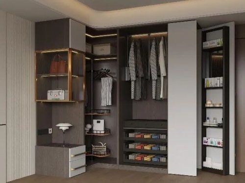 -开放鞋架换鞋凳:集成换鞋凳,坐式换鞋更稳,开放区存鞋,空间利用高效。