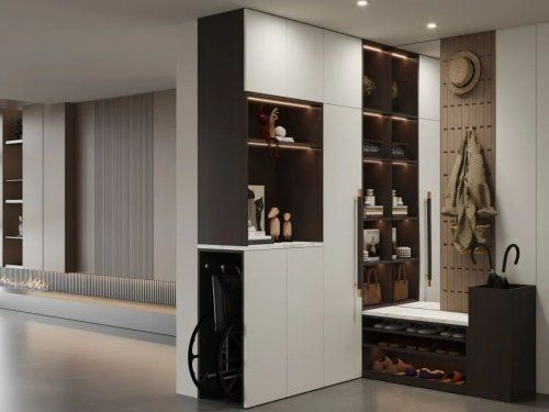 •关键功能:错层地柜、坐式换鞋收纳等。