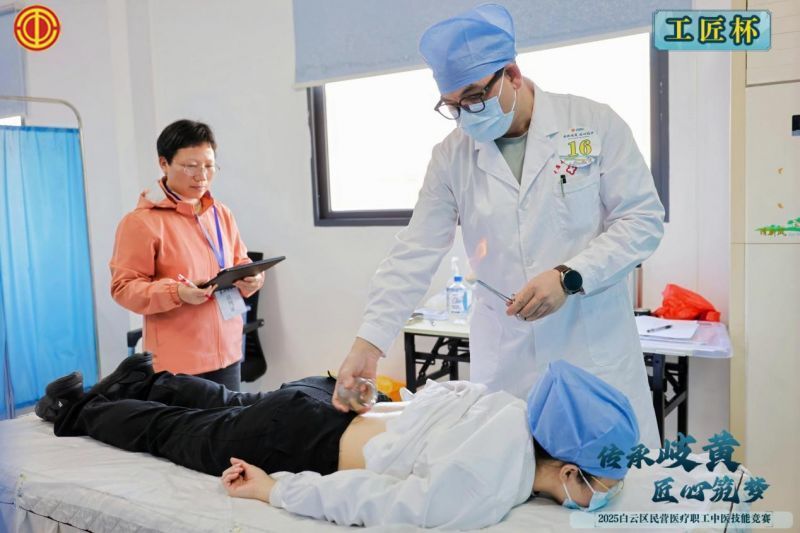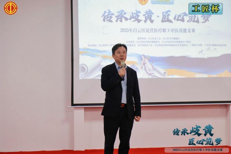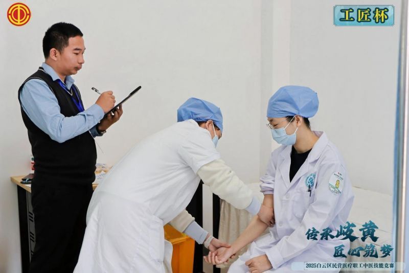 为深入贯彻落实习近平总书记关于中医药工作的重要指示精神,全面落实《中华人民共和国中医药法》《"健康中国2030"规划纲要》及省、市中医药发展部署,持续提升基层中医药服务能力,2025年11月26日,由白云区总工会、白云区卫生健康局指导,白云区民营医疗机构协会和区民营医疗机构工联会主办,白云区总工会来穗务工人员工作委员会、永平街道总工会、白云区民营医疗机构协会学术委员会、广州东仁医院、广东省丰源职业培训学校协办的"工匠杯"—2025年白云区民营医疗职工中医技能竞赛在广州东仁医院成功举办。本次竞赛吸引了全区逾百名民营医疗机构中医师、针灸师、康复治疗师、传统康复医学人员等同台竞技,以赛促学、以赛促练,全面展现了白云区基层中医药人才的精湛技艺与时代风采。