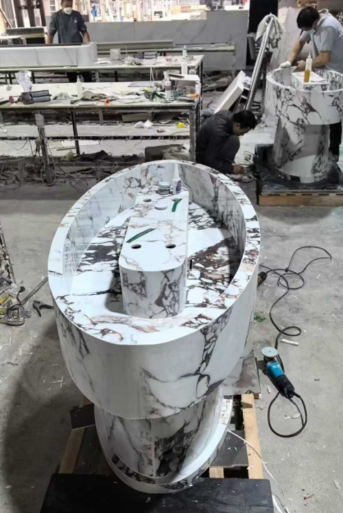 目前推出热弯岩板产品以来,深受经销商、房地产和开发商的一致好评,包括我们现在跟很多大的企业、上市公司都在合作,比如华为、深圳地铁、新希望、东鹏、马可波罗等大型企业。