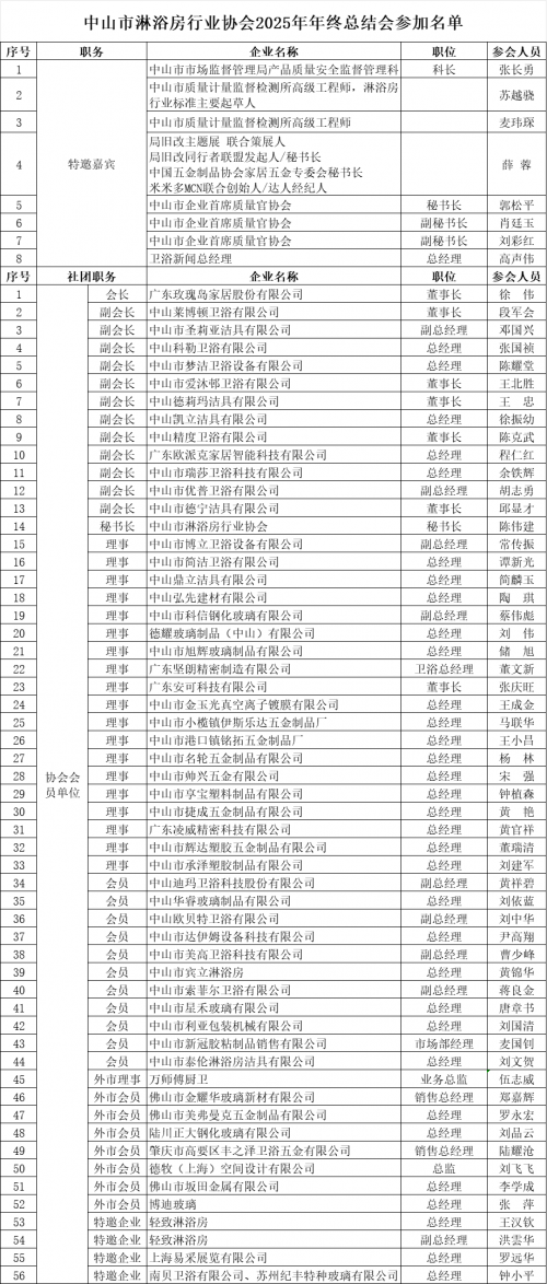 2026年1月13日,中山市淋浴房行业协会第五届第三次会员大会暨“品行天下 质赢未来”2025年终总结会盛大启幕。行业监管代表、权威专家、金融伙伴与百余位会员企业掌舵人齐聚一堂,以品质为锚、以趋势为引,共探产业韧性发展之道,共筑“好浴房 中山造”金字招牌新高度。作为承载全国70%中高端淋浴房市场份额、超40%出口额的核心产区,中山淋浴房产业正站在存量竞争的关键节点,此次大会既是产业发展的年度复盘,更是以品质破局、向全球标杆进阶的战略誓师。