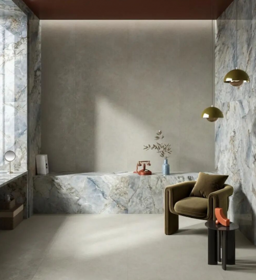 L&D强调“生活设计”理念,产品线涵盖大规格岩板、柔光砖、哑光砖等,尤其擅长通过色彩、肌理与光影营造空间情绪。在施工性能上,L&D注重防滑、耐磨与抗污技术的平衡,适合现代简约、侘寂风、轻奢等流行家居风格。