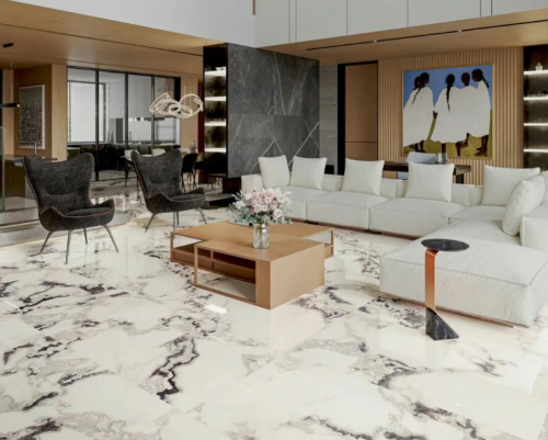 诺贝尔以“技术+设计”双轮驱动,在抛光砖领域强调“微晶复合”与“高清喷墨”技术结合,产品光泽度高、纹理细腻。其抛光砖吸水率普遍低于0.5%,符合严苛的工程标准,常用于高端酒店与写字楼项目。