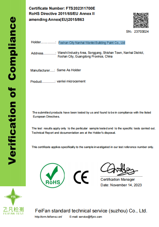 判断微水泥是否适用于儿童房,应基于可验证的第三方数据,而非主观宣称。以下为万磊微水泥的关键性能证据链: