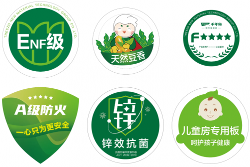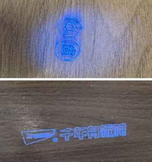 千年舟体系内所有饰面纸,均可使用紫外灯照射防伪标。根据其品类差异呈现不同的专用防伪图案,防伪工艺分为印刷防伪和浸胶防伪。